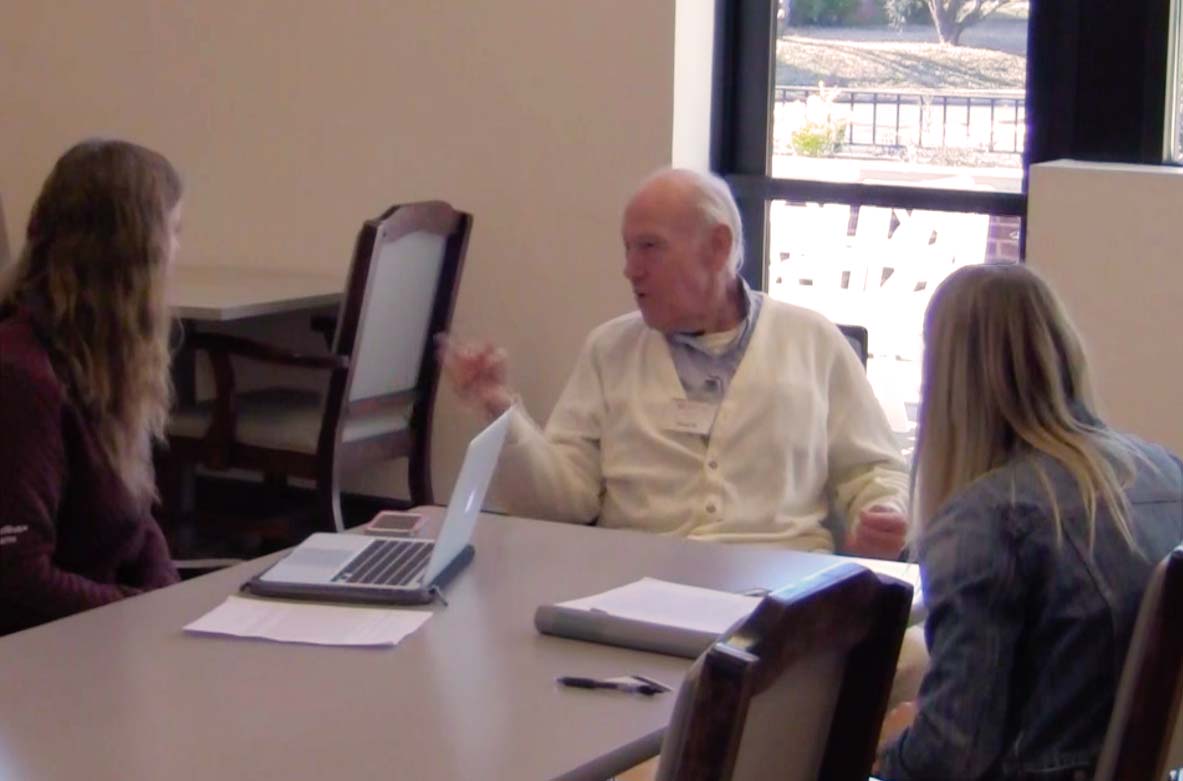 Professor Casey Dexter, Ph.D., teaches the class and first introduced this project two years ago. “I needed to find a hook for students; a way to teach them empathy and a desire to better understand the aging process,” Dr. Dexter said. “What developed was a bi-annual class project to record and share the life stories of those in Adult Day Health at Mercy Care. It underlines how storytelling and cross-generational interaction serve as a socio-cognitive therapy for those struggling with memory loss.”