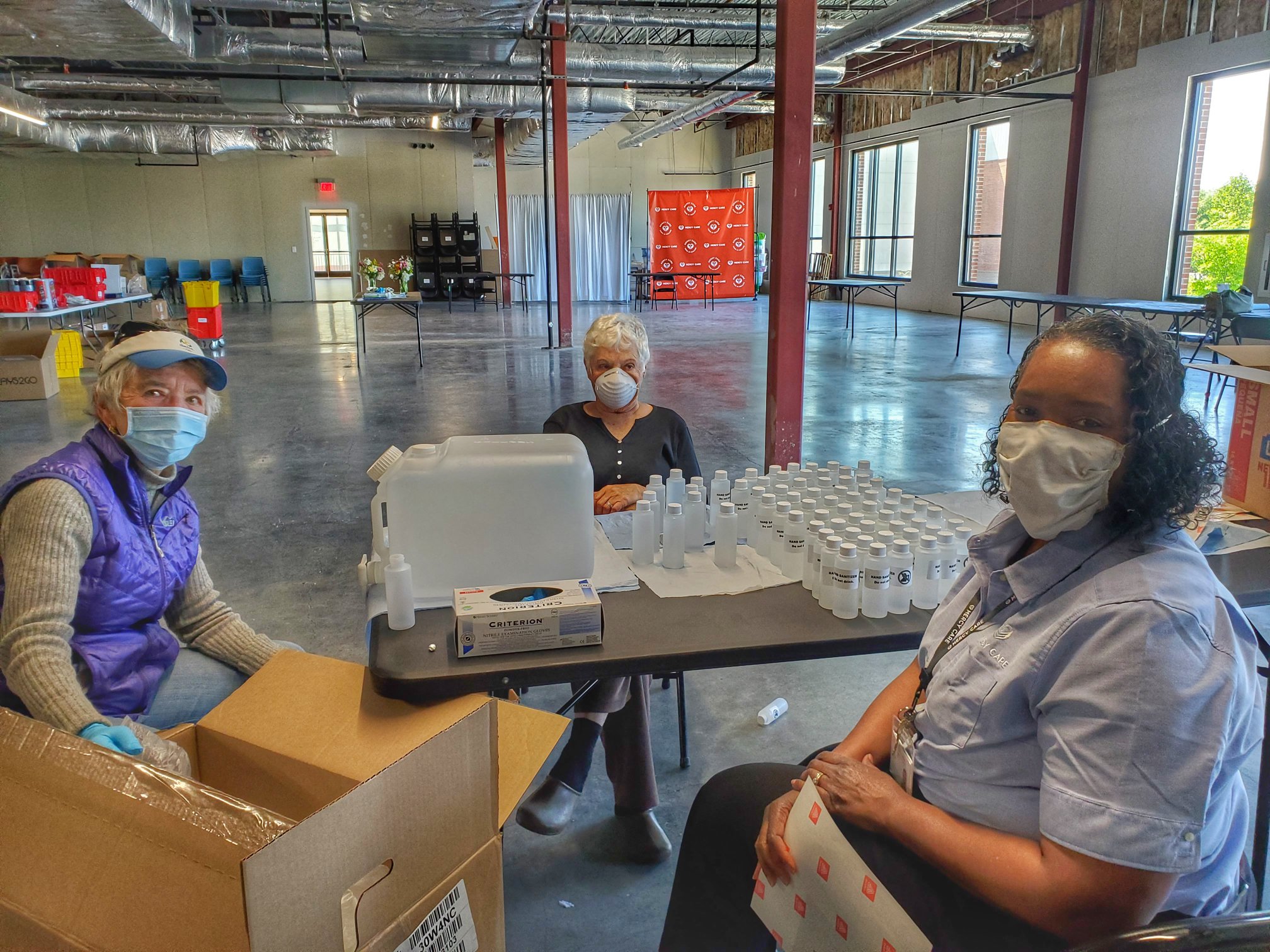 On March 13, Fox 5 aired a story about The Old Fourth Distillery on Edgewood Avenue turning alcohol into hand sanitizer and freely handing them out. By March 18, the demand was so great they limited free bottles to 2 per customer, and then limited it again to first responders. Partners for Home and United Way of Atlanta helped secure funding, and then a former Mercy Care board member donated more funding to the cause. Since March 30th, small groups of volunteers and staff distance themselves in the 10,000-square-foot unfinished space at Mercy Care Chamblee and have filled 7,660 individual 4oz bottles of hand sanitizer. Mercy Care outreach teams take the boxes of hand sanitizer with them as they work to lessen the spread of the virus throughout Atlanta’s homeless population.